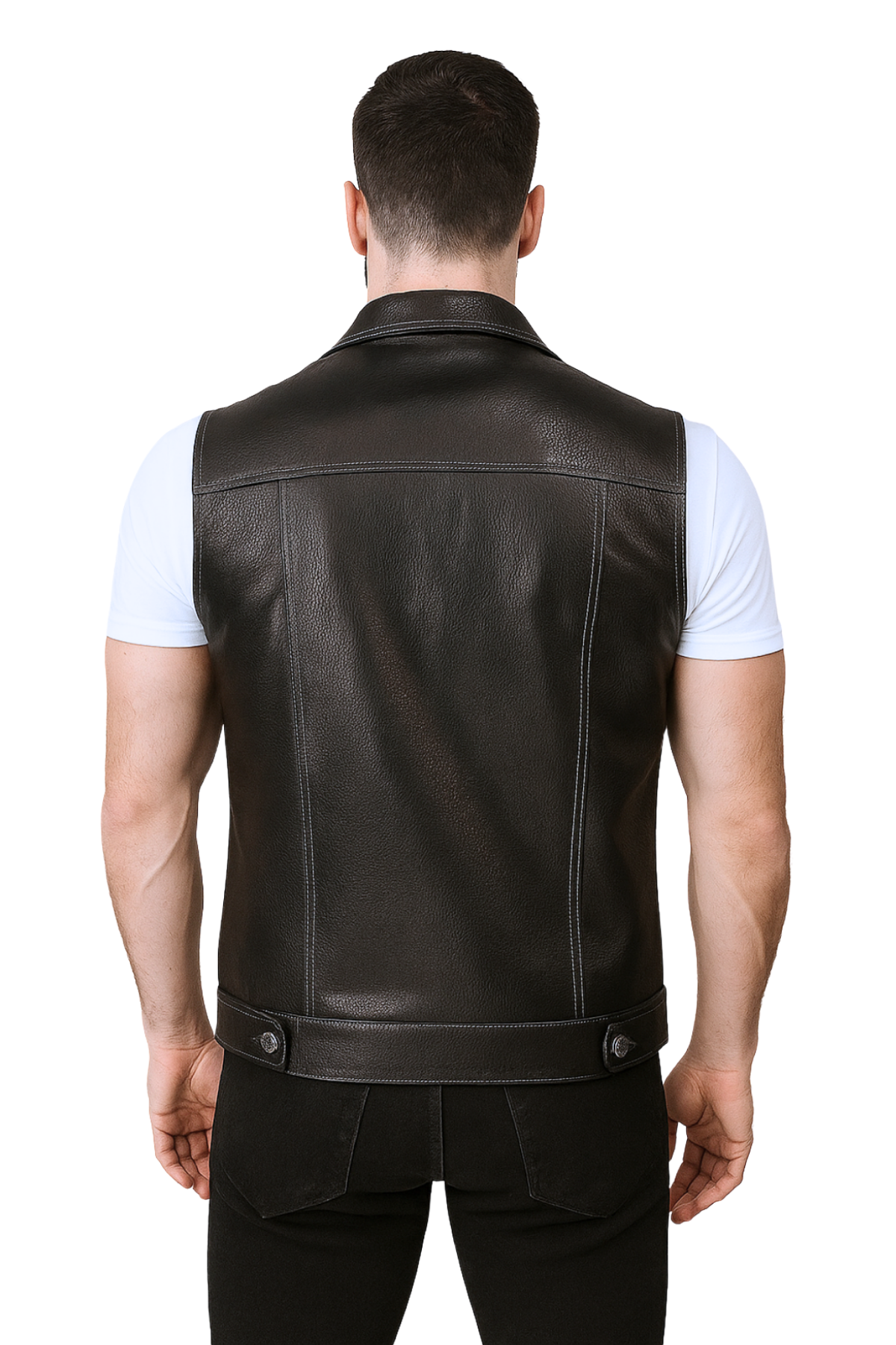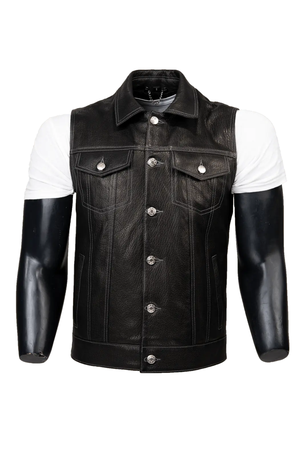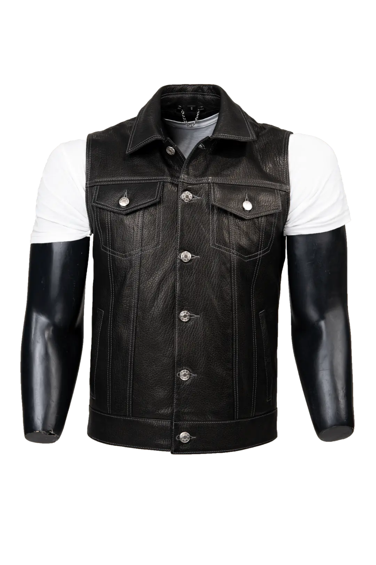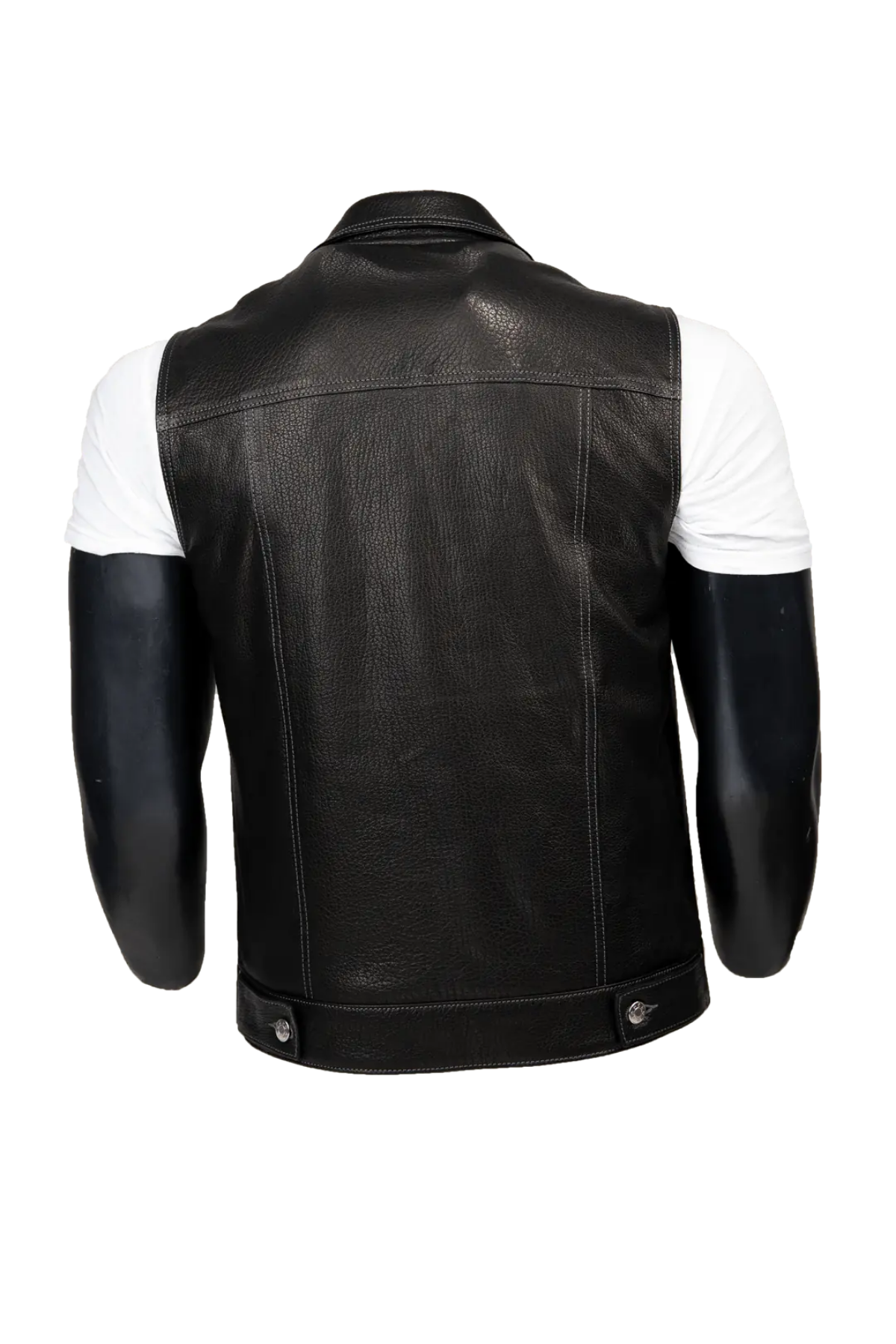 Hakiki Jumbo Deri Motorcu Tarzı Erkek Yelek - Siyah Biker