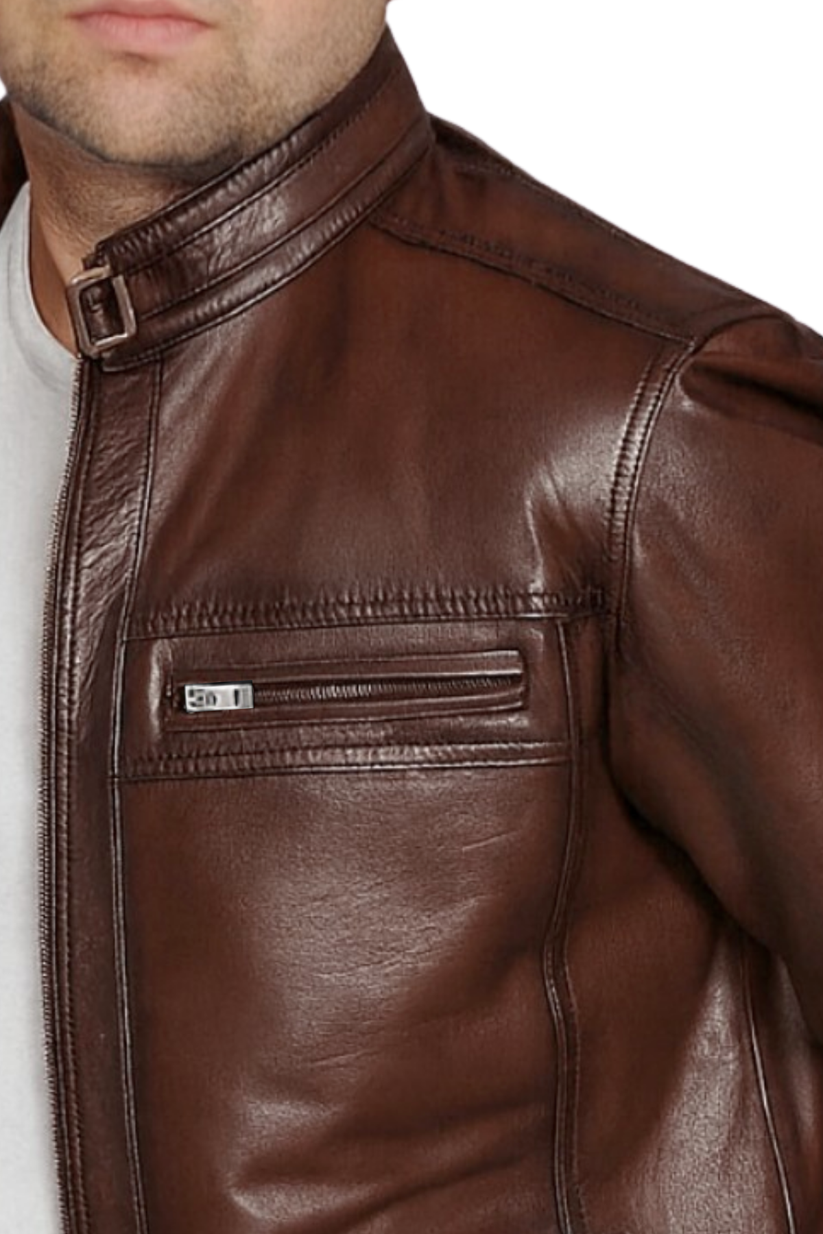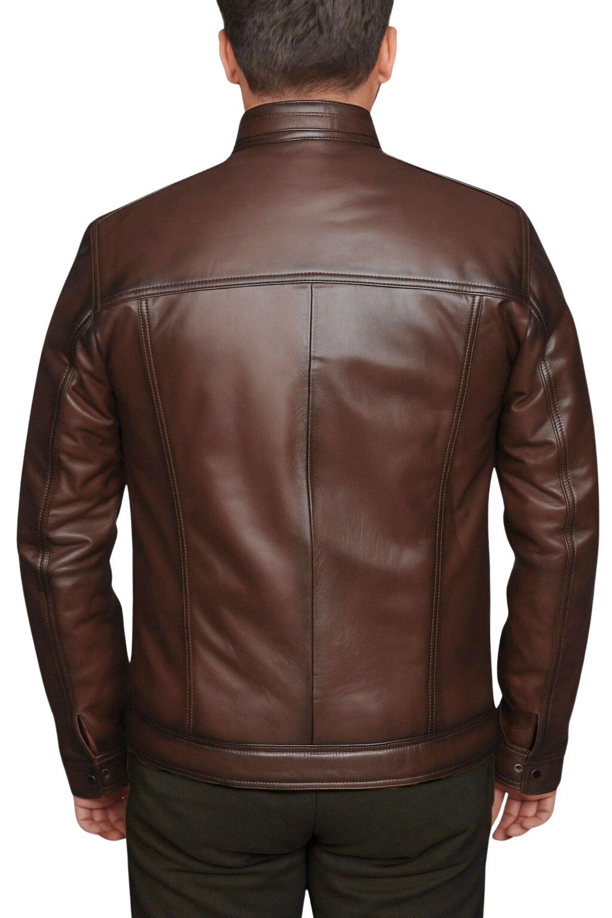 Hakiki Deri Erkek Kestane Dik Yaka Ceket – Regular Kalıp