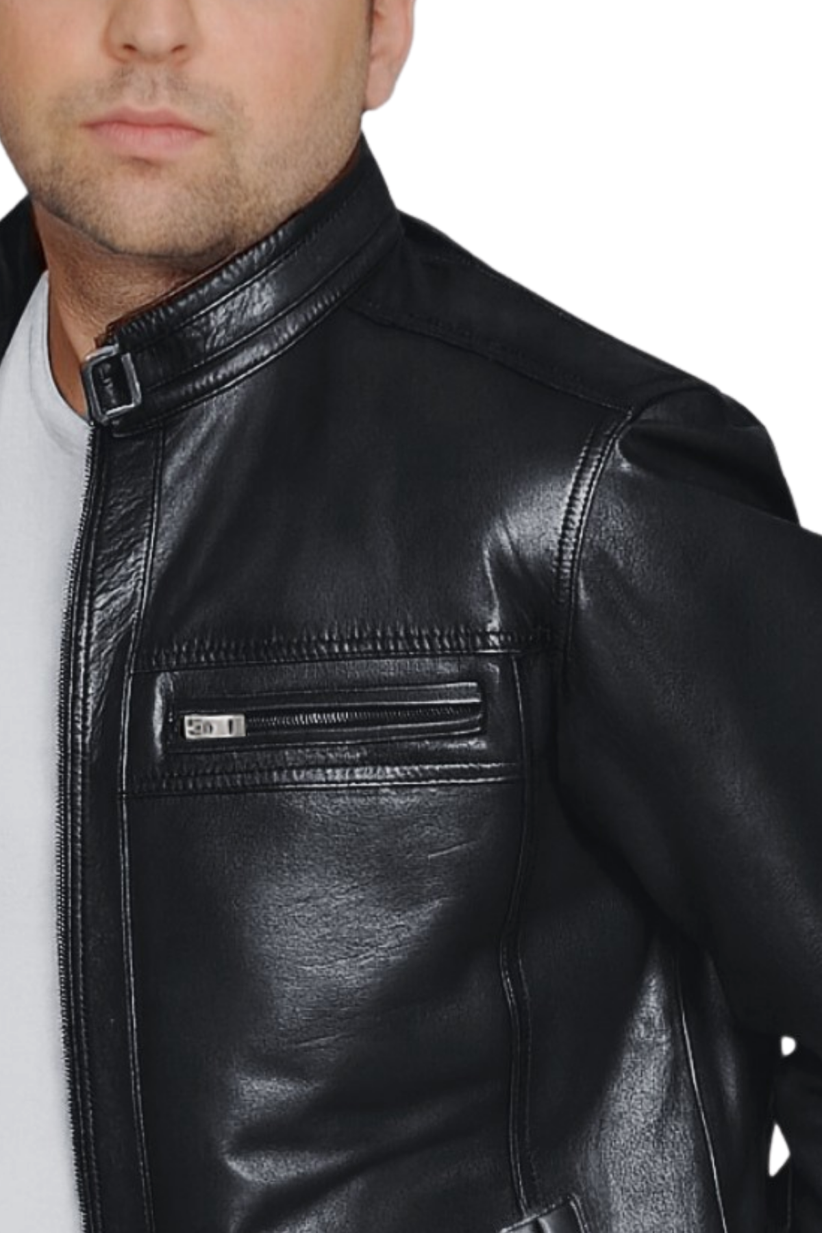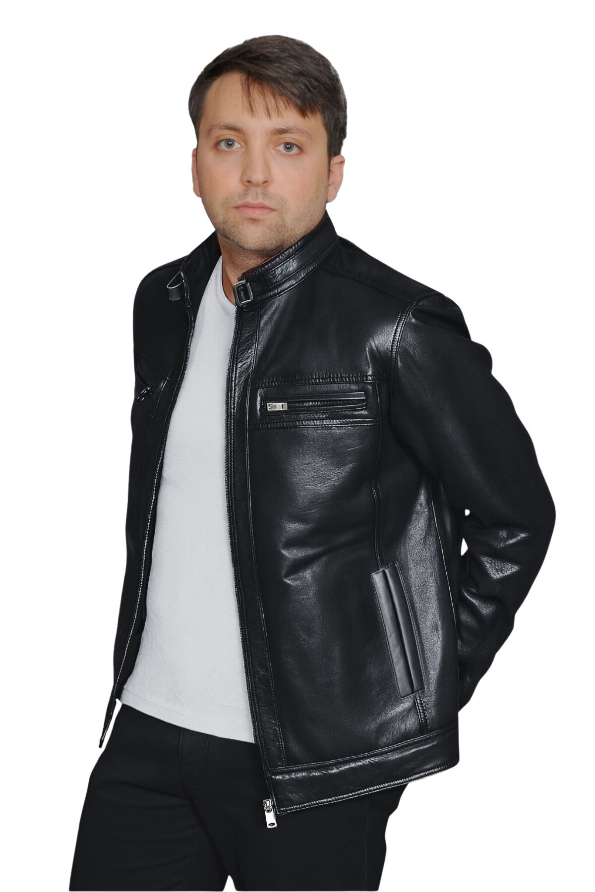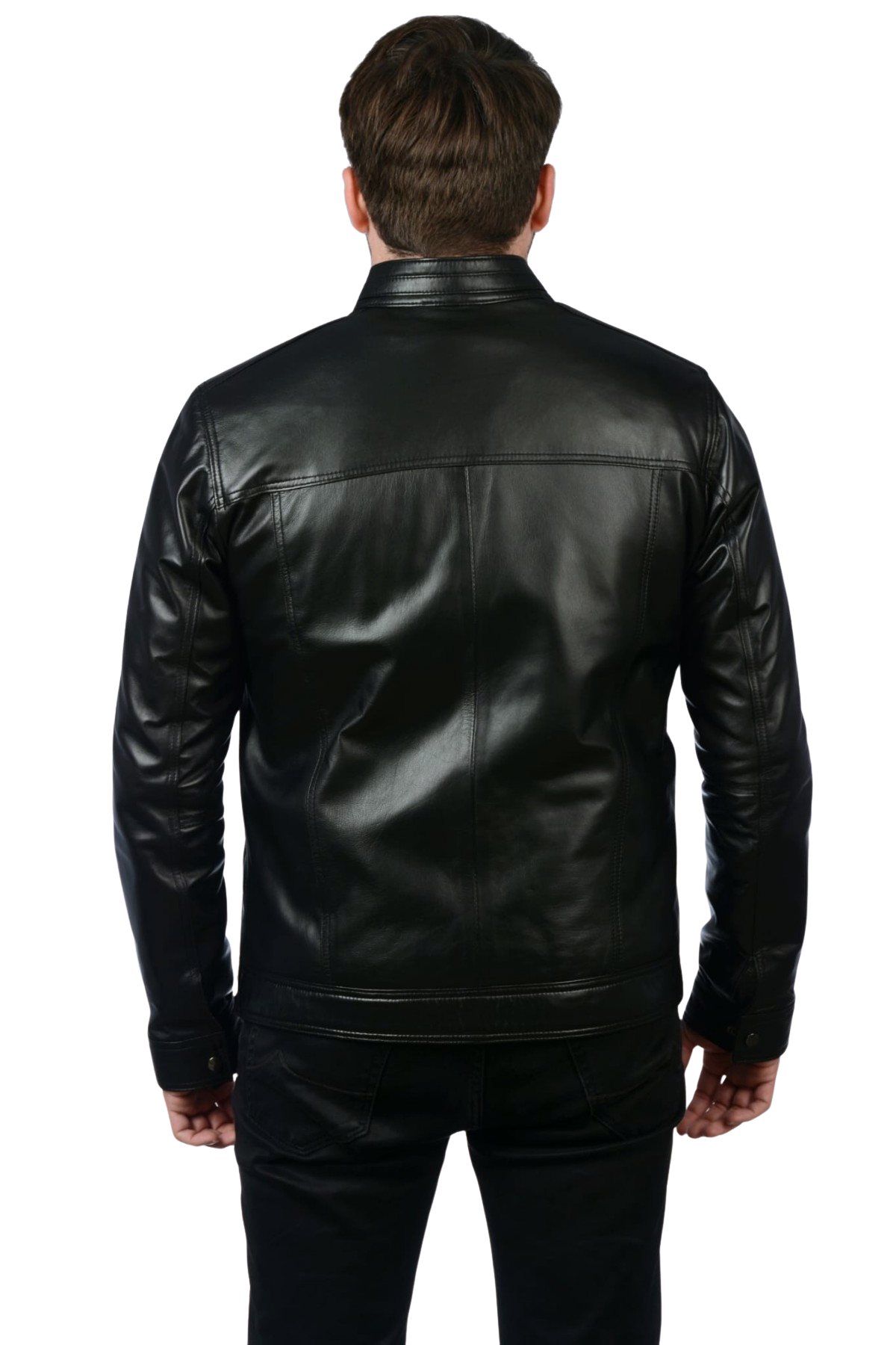 Hakiki Deri Erkek Siyah Dik Yaka Ceket – Regular Kalıp