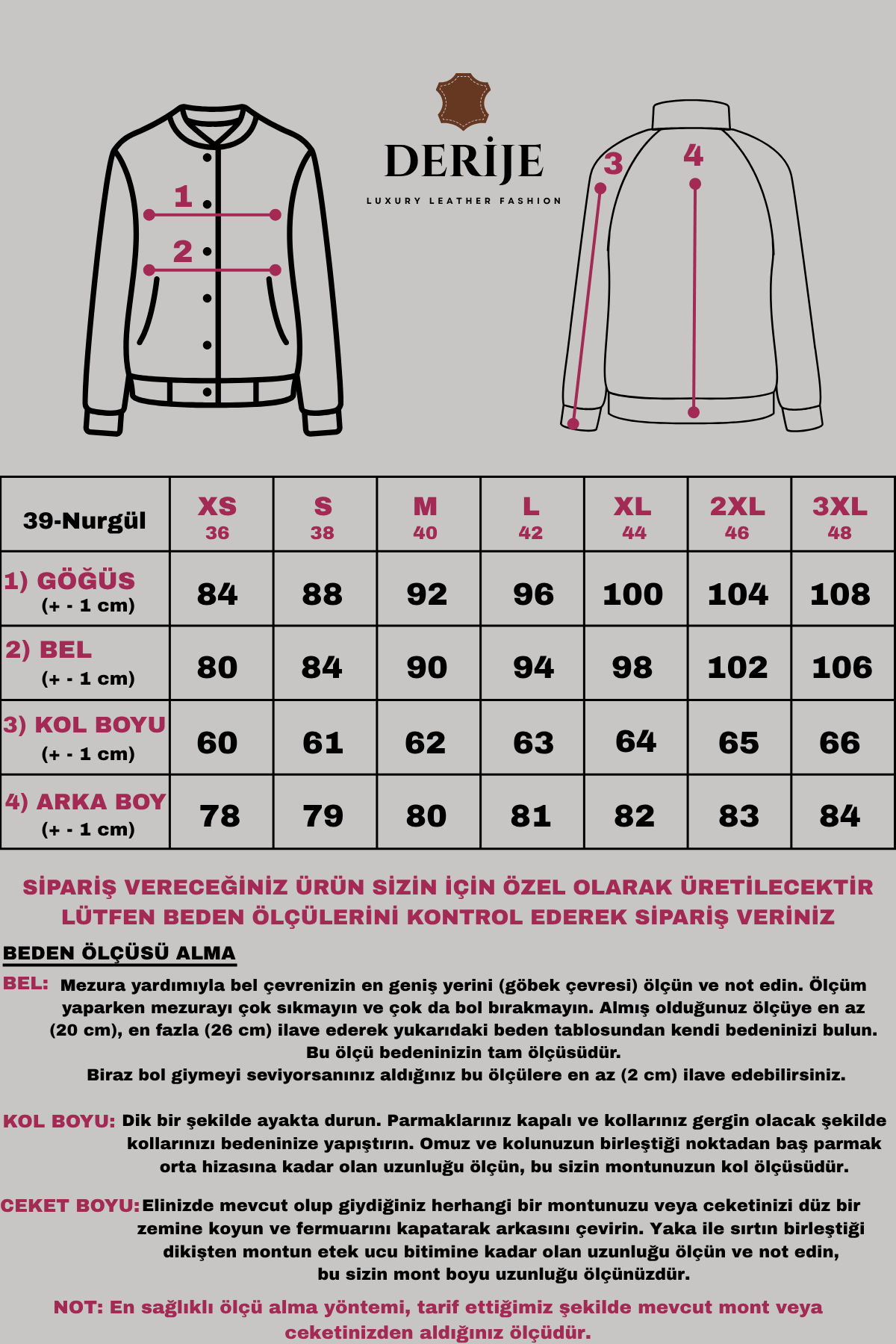 Bütün ürünler yüksek kalite hakiki deriden özenle üretilir ve DERİJE garantisindedir.