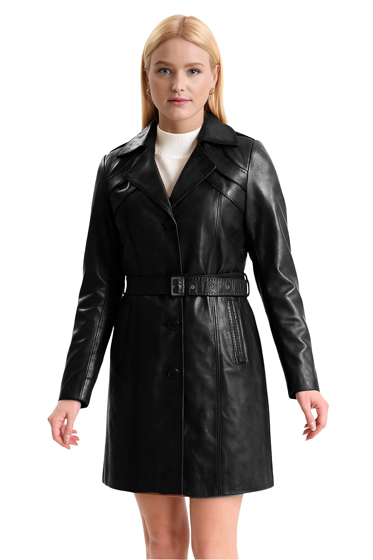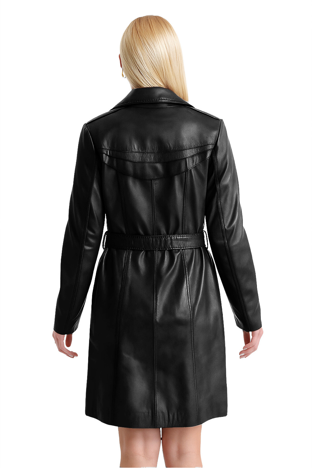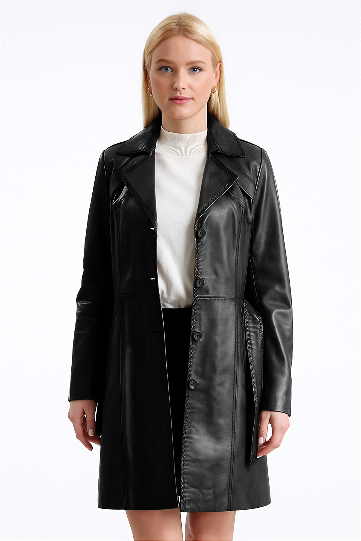 Derije Hakiki Deri Siyah Kadın Trençkot