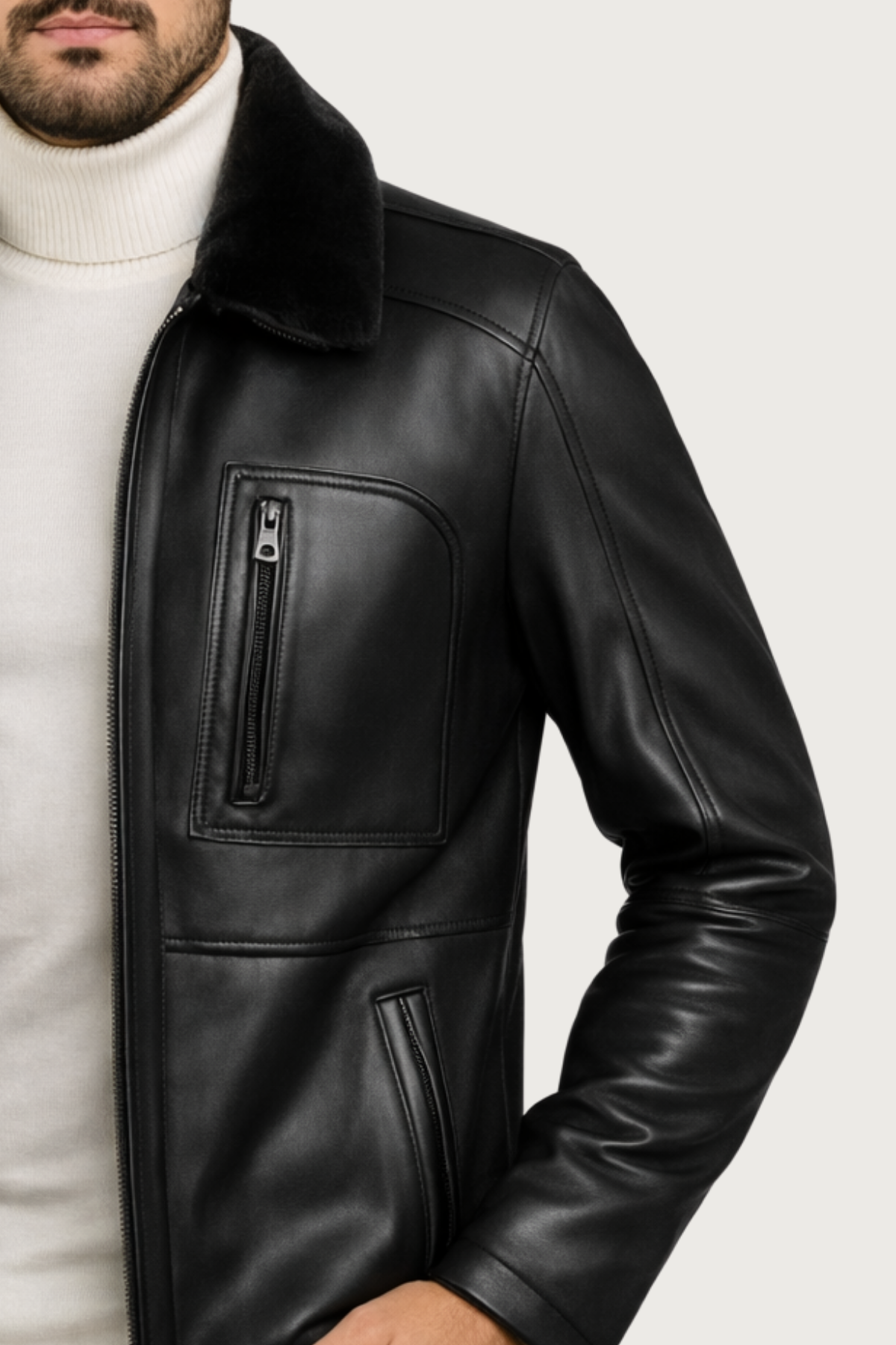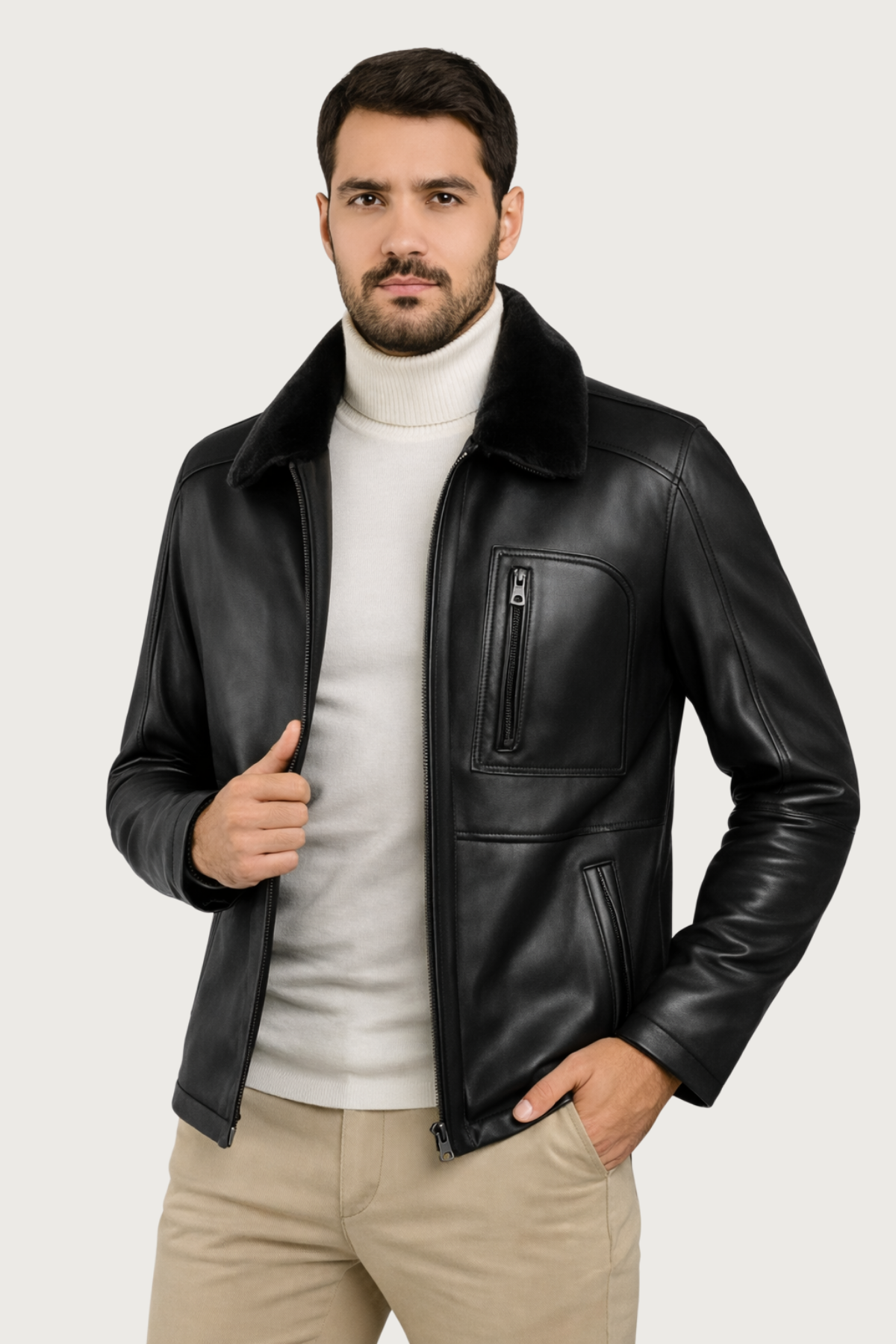 Derije kalitesi ve ustalığıyla tasarlanan bu özel ceket, hakiki deri dokusuyla güçlü ve karizmatik bir duruş sunuyor.