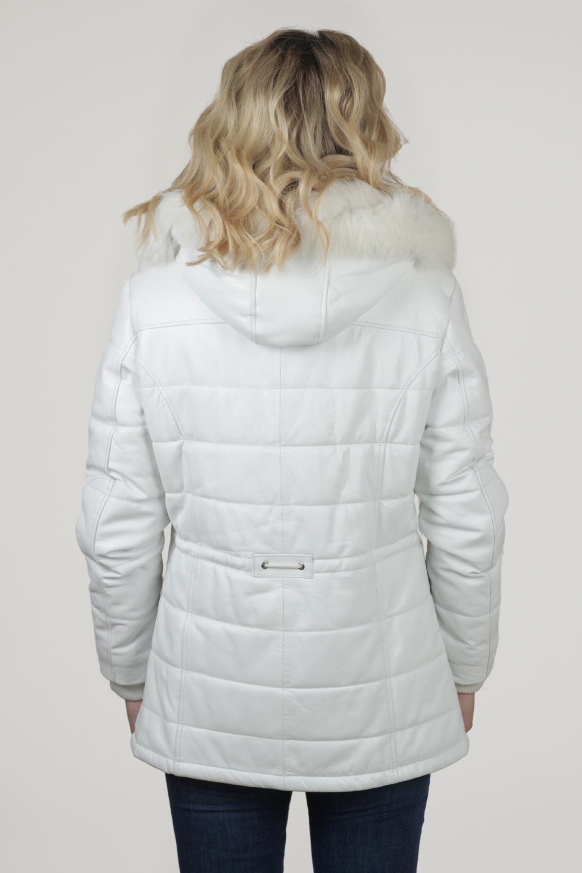 Derije Hakiki Deri Kadın Kaban – Kürklü Kapüşonlu, Triko Detaylı, Belden Oturtmalı