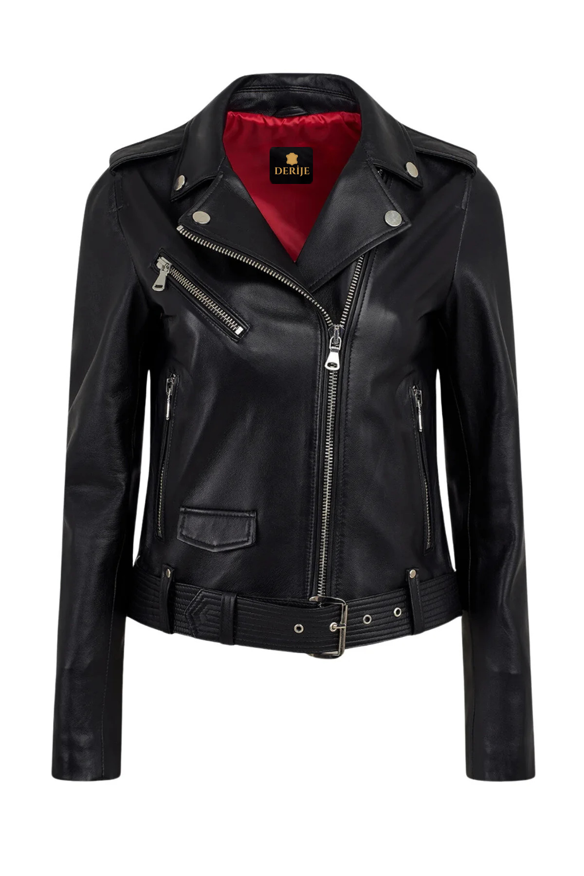 Derije marka bu siyah hakiki deri motorcu mont, güçlü ve iddialı tarzıyla gardırobunuzun vazgeçilmezi olacak. Yüksek kaliteli gerçek deriden üretilen bu model, dayanıklılığı ve konforu bir araya getirir. Asimetrik fermuar detayı, metal çıtçıtlı geniş yakası ve bele oturan kesimiyle klasik biker stilini modern bir dokunuşla sunar.