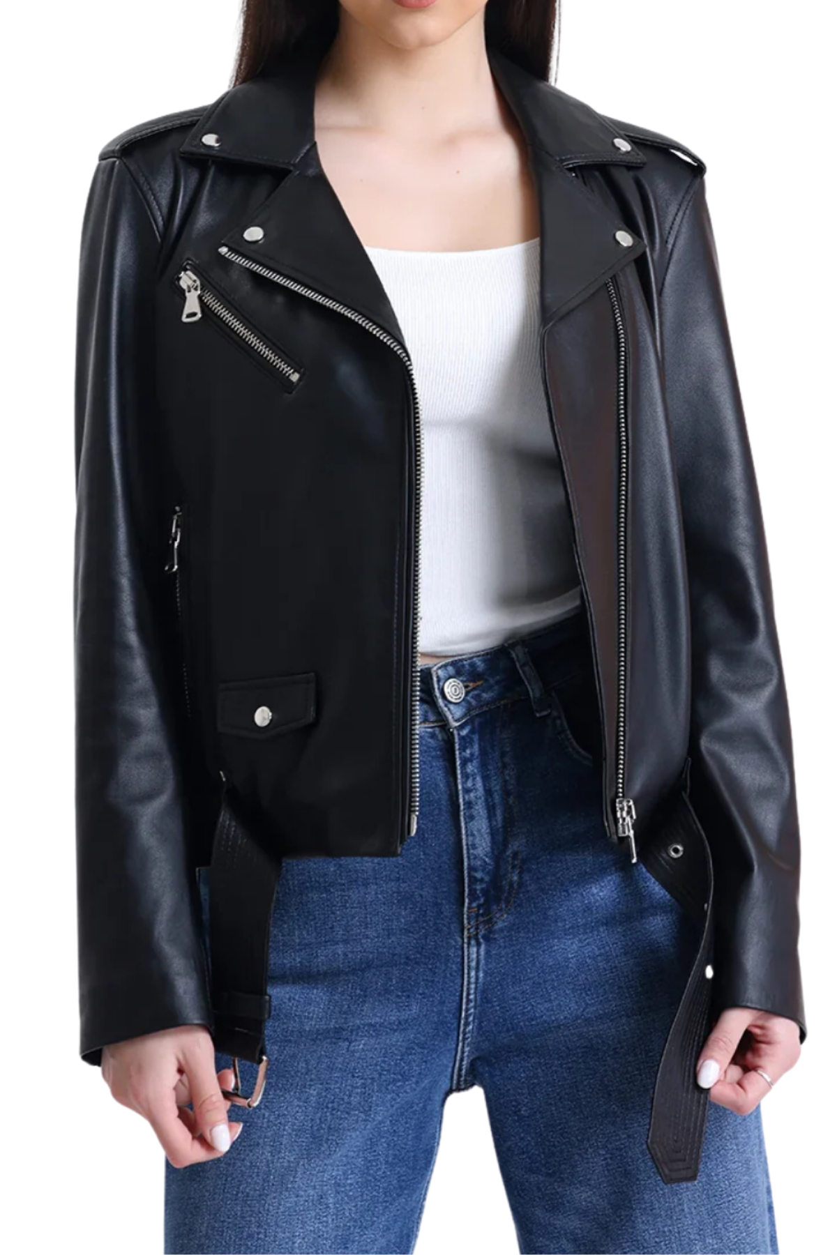 Bu deri ceket, hem sokak modasına uygun hem de zamansız bir şıklık arayan kadınlar için tasarlandı. Jean pantolonlarla, elbiselerle ya da topuklu ayakkabılarla kolayca kombinlenebilir.