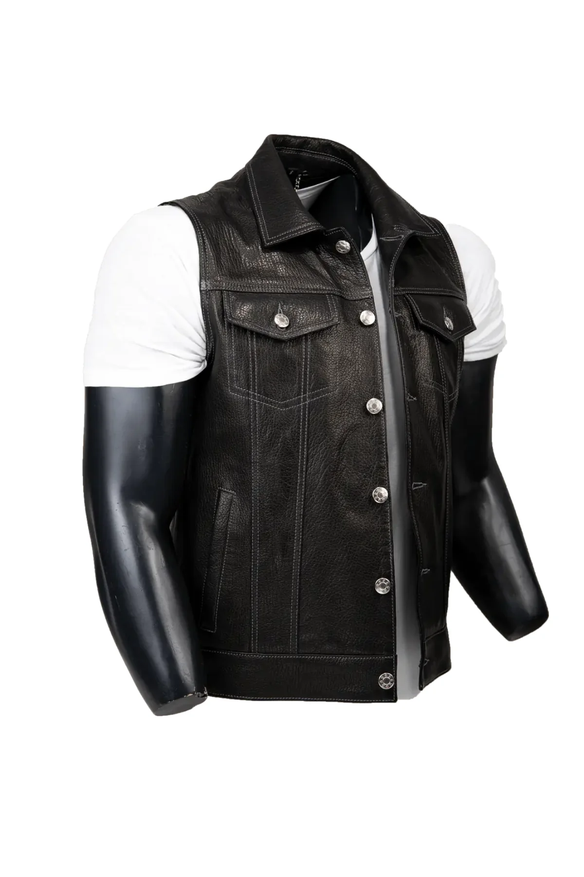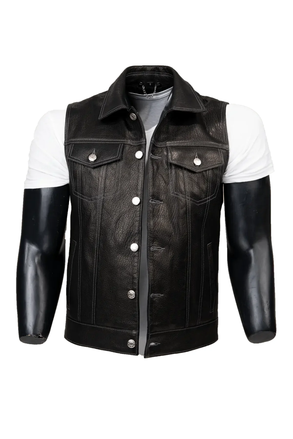Hakiki Jumbo Deri Motorcu Tarzı Erkek Yelek - Siyah Biker