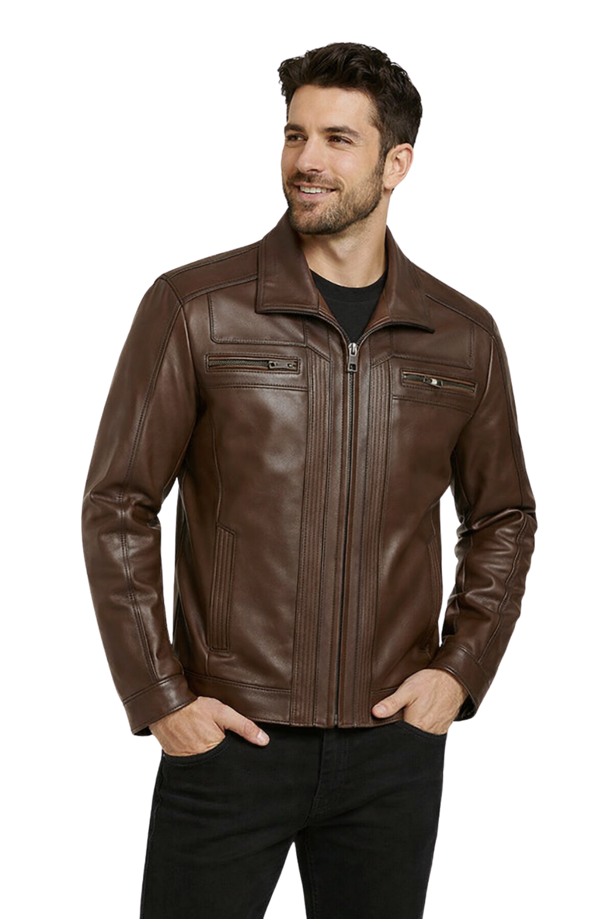 İki adet fermuarlı göğüs cebi ve yan cepler, fonksiyonellik sunarken, klasik yakası ve regular fit kesimiyle zamansız bir duruş sergiliyor. Hem günlük kombinlerinizde hem de özel davetlerde rahatlıkla kullanabileceğiniz bu deri ceket, gardırobunuzun vazgeçilmezi olacak. Günlük şehir şıklığından hafta sonu gezilerine, arkadaş buluşmalarından akşam davetlerine kadar geniş bir kullanım alanına sahiptir.