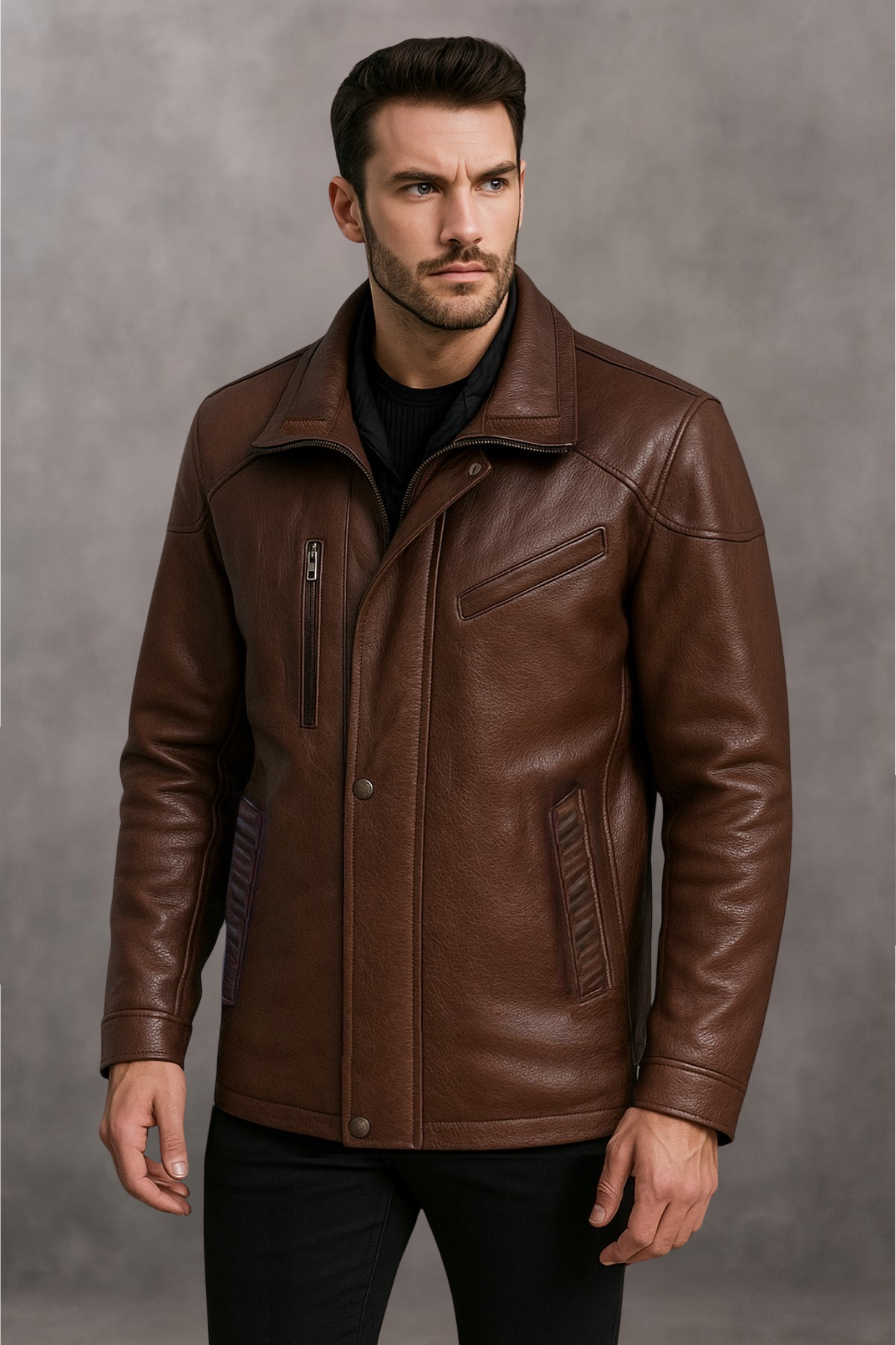 Ergonomik kalıbı sayesinde rahat bir giyim deneyimi sunarken, fermuarlı ve kapaklı cepler günlük kullanıma pratiklik katar. Hem şık davetlerde hem de günlük şehir hayatında tercih edilebilecek bu deri kaban, tarzına değer veren erkekler için ideal bir seçimdir.