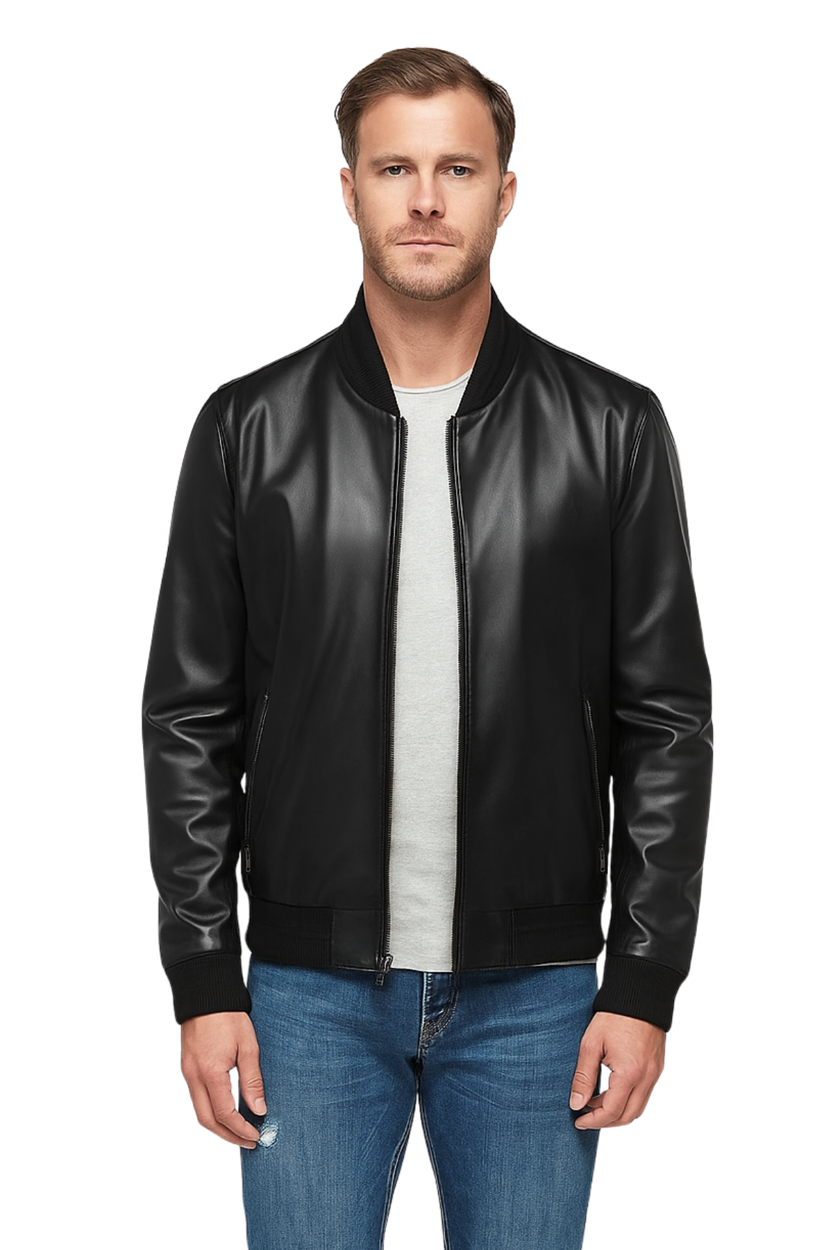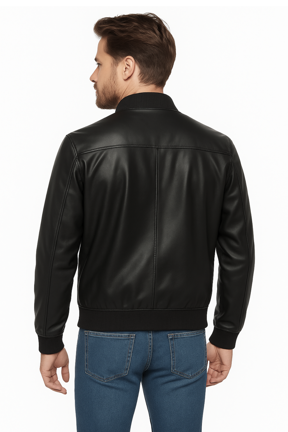 Hakiki Deri Siyah Kolej Tarzı Erkek Ceket – Sportif Şıklık