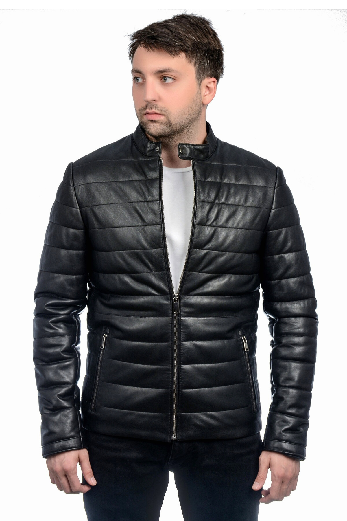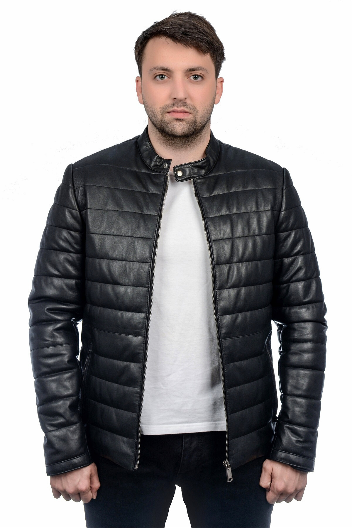 Soğuk havalarda stilinden ödün vermeyen erkekler için özel olarak tasarlanan bu siyah şişme mont, %100 hakiki deri kullanılarak üretilmiştir. Şıklığı ve dayanıklılığı bir araya getiren bu mont, hem günlük kullanım hem de özel kombinler için ideal bir tercihtir.