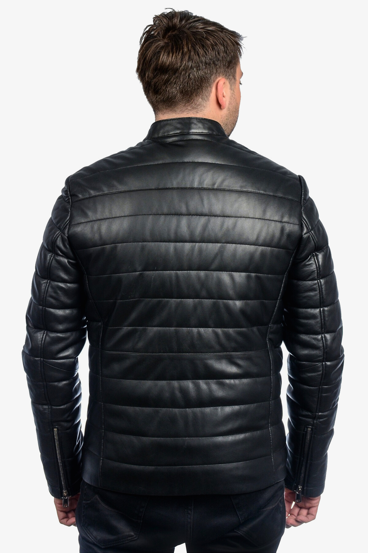 Hakiki Deri Erkek Siyah Şişme Mont