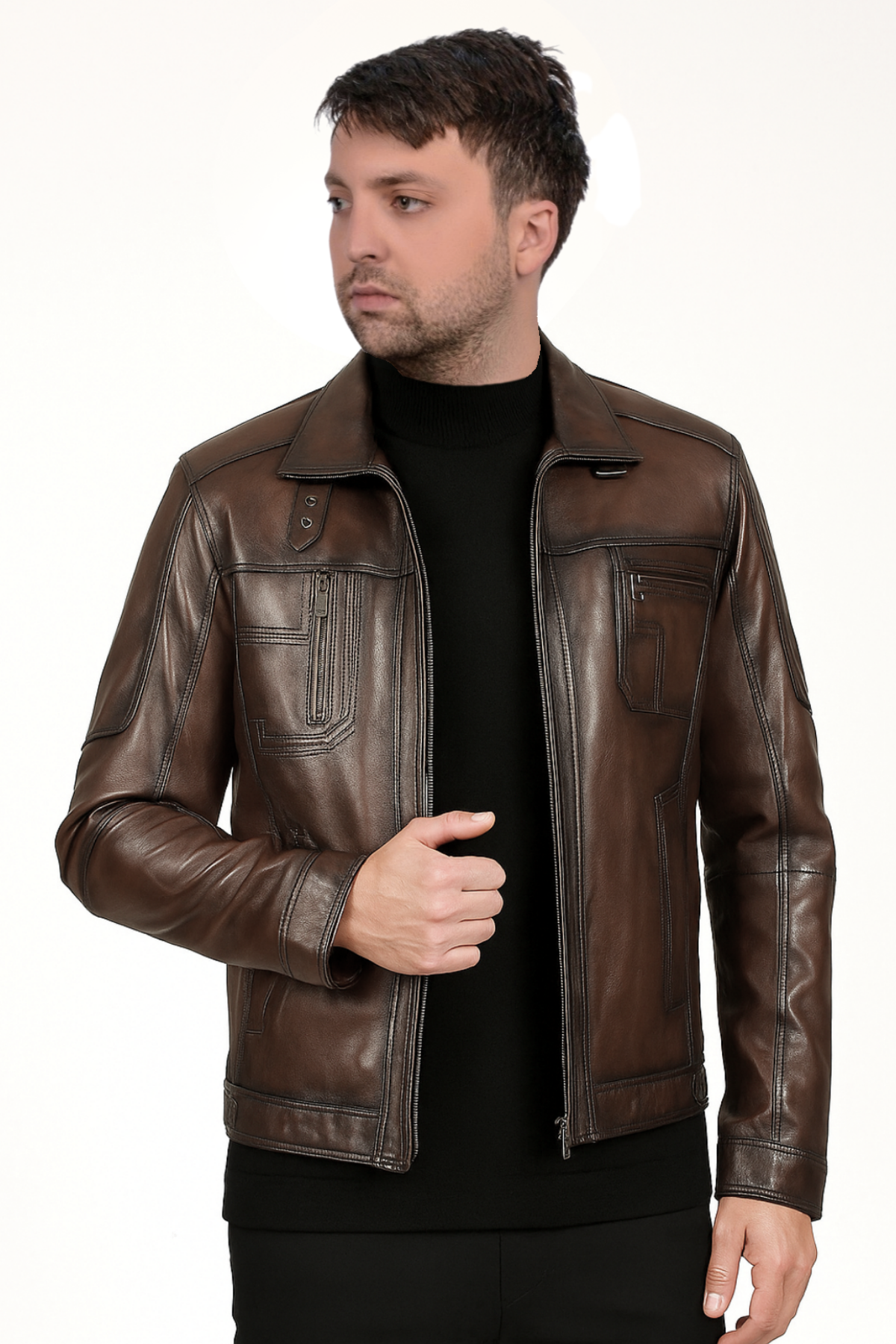 Derije Hakiki Deri Erkek Ceket – Kestane Karartma