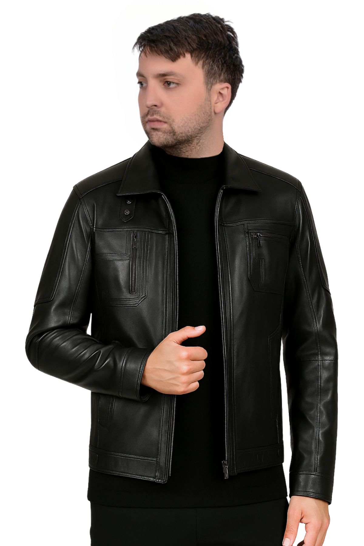 , özel işçilikle hazırlanan siyah rengiyle zamansız bir stil sunuyor. %100 gerçek deriden üretilen bu ceket, dayanıklı yapısı ve doğal parlaklığı ile uzun ömürlü kullanım sağlar.