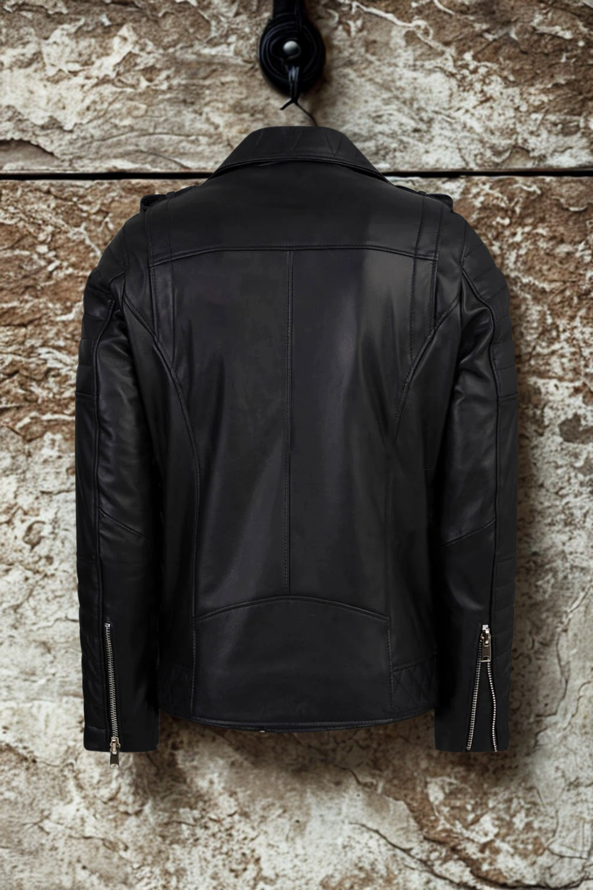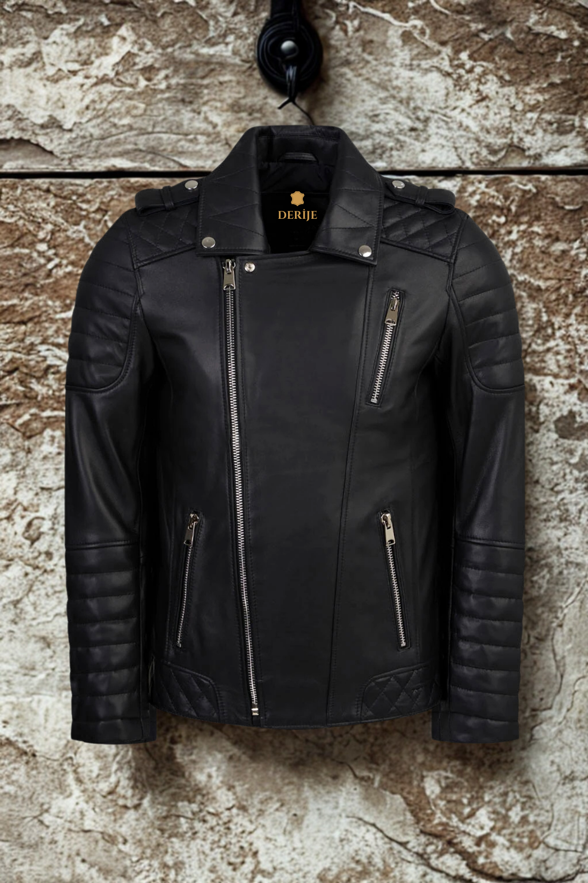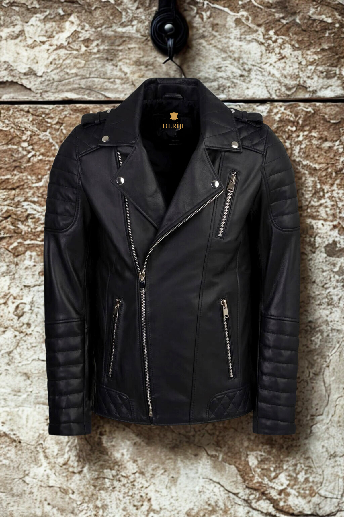 Derije Erkek Siyah Hakiki Deri Motorcu Montu