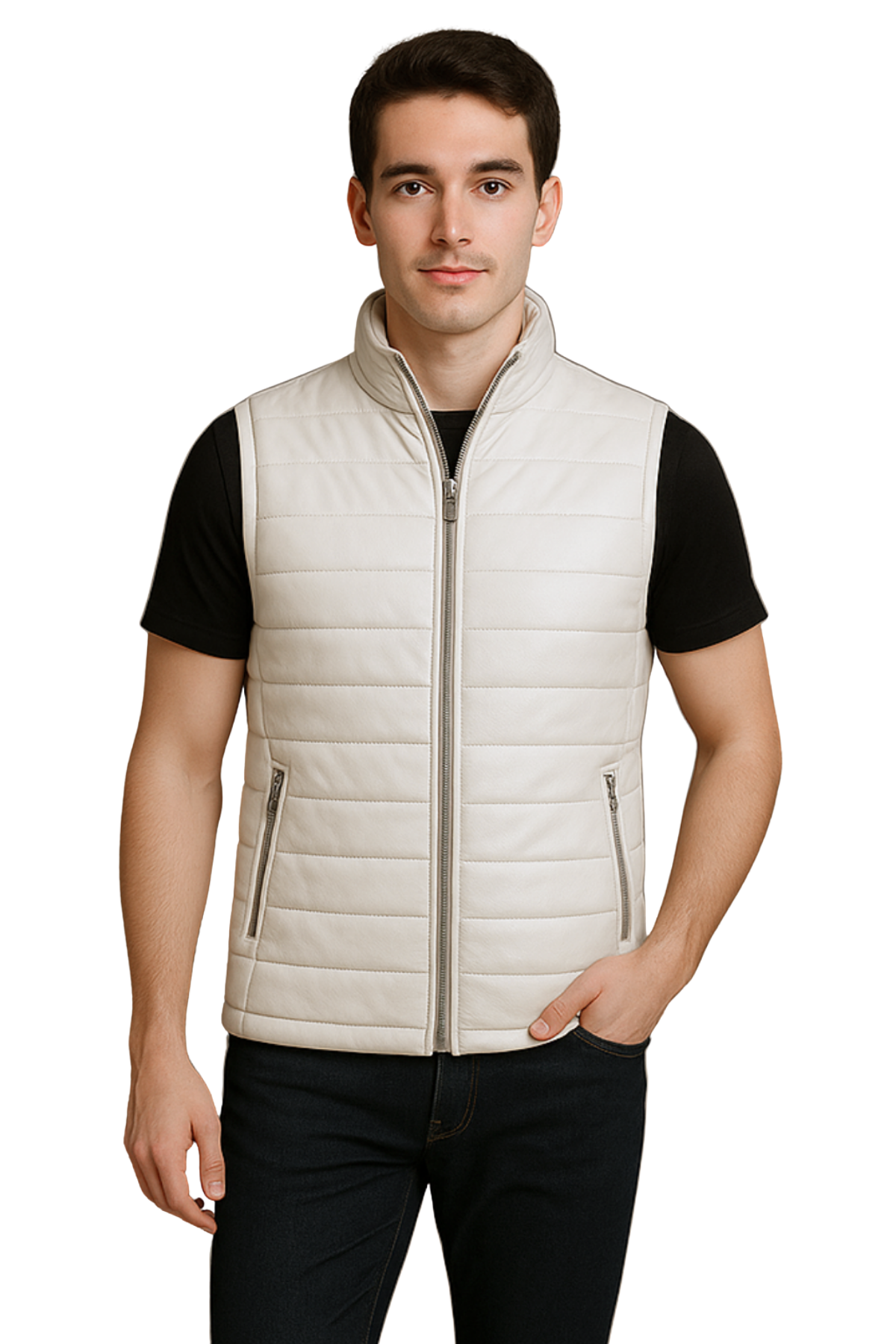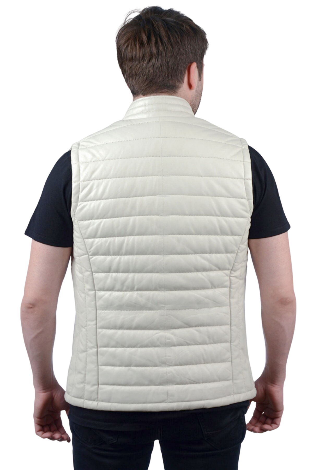 %100 Hakiki Kuzu Derisi Erkek Ekru Şişme Yelek - Modern Stil ve Klasik Şıklığın Mükemmel Uyumu