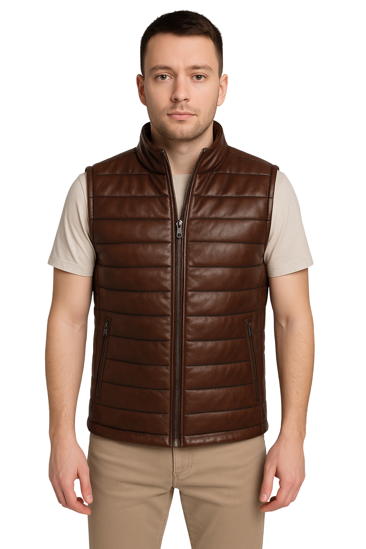 %100 Hakiki Kuzu Derisi Erkek Kahverengi Şişme Yelek - Modern Stil ve Klasik Şıklığın Mükemmel Uyumu
