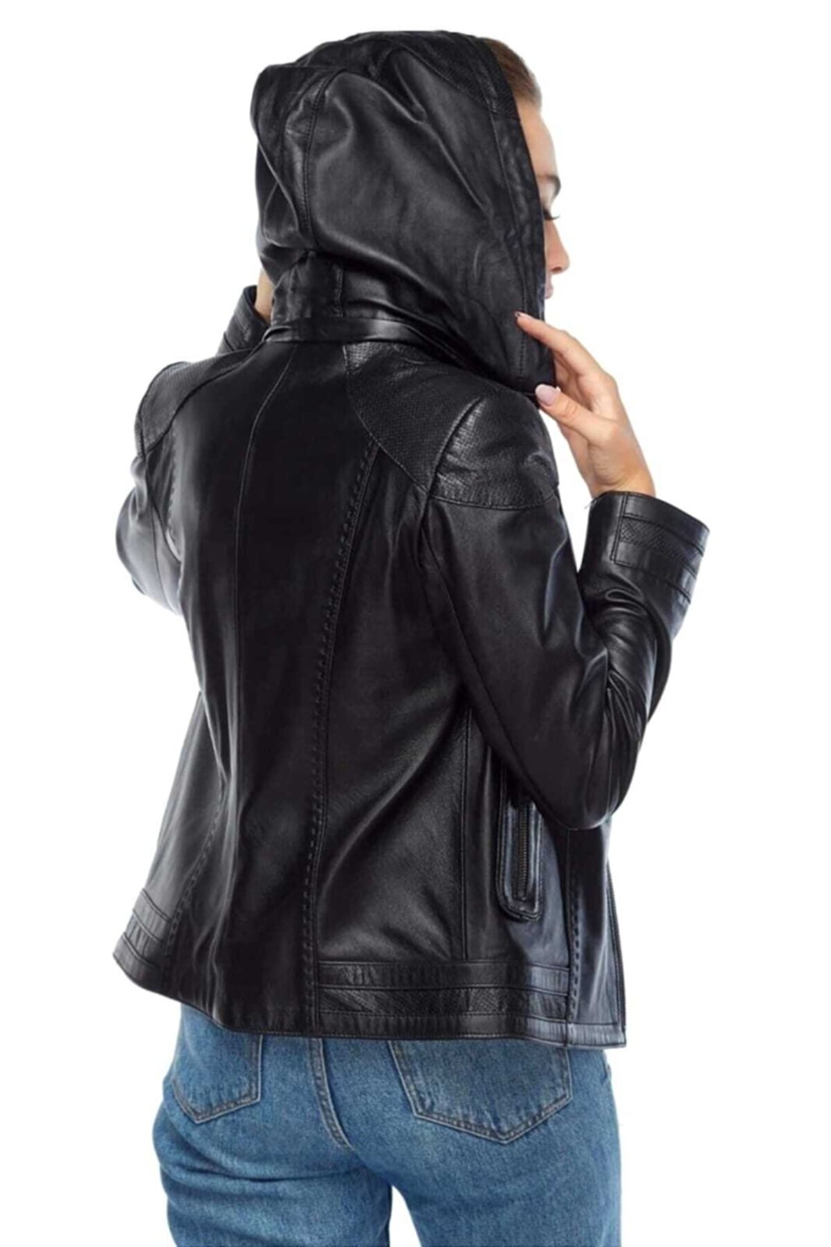 Hakiki Deri Seyyar Kapüşonlu Siyah Slim Fit Kadın Ceket