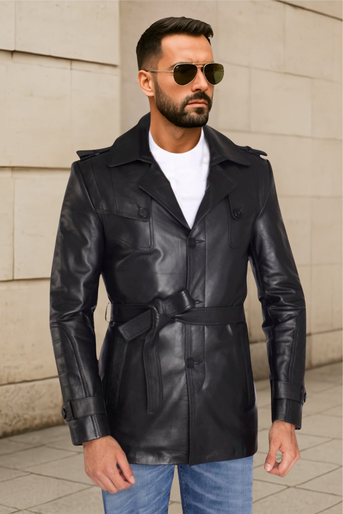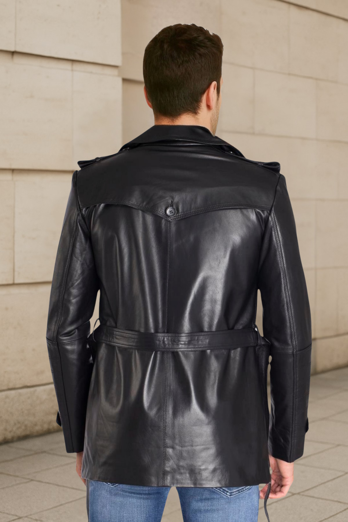 Hakiki Deri Siyah Erkek Trençkot – Şıklığın ve Asaletin Deri Yorumu